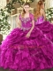 Fuchsia Sleeveless Floor Length Beading and Ruffles and Pick Ups Lace Up Sweet 16 Dress