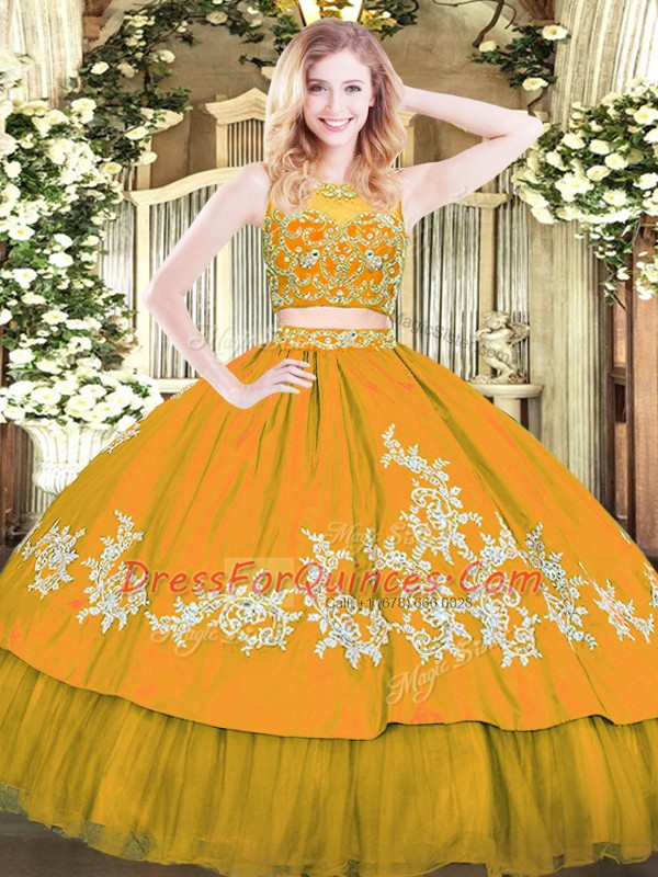 Glittering Gold Scoop Neckline Beading and Appliques Quince Ball Gowns Sleeveless Zipper