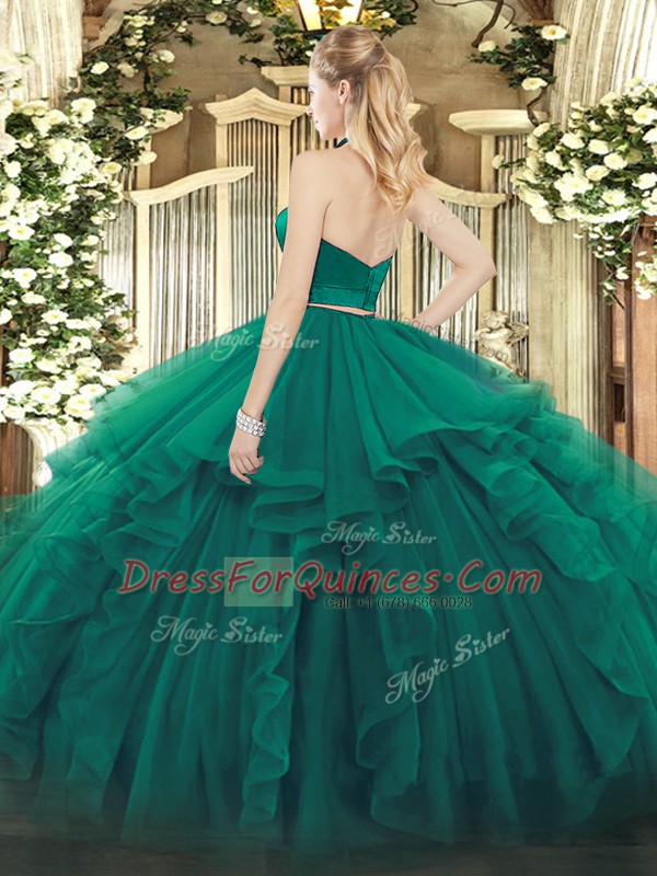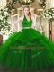 Green Halter Top Zipper Ruffles Quinceanera Gown Sleeveless