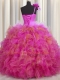 Handcrafted Flower Multi-color Tulle Lace Up One Shoulder Sleeveless Floor Length Quinceanera Dress Beading and Ruffles and Hand Made Flower