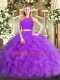 High End Scoop Sleeveless Quinceanera Gown Floor Length Ruffles Eggplant Purple Tulle
