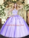 Hot Sale Tulle Scoop Sleeveless Zipper Lace and Appliques Sweet 16 Dresses in Lavender