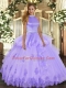 Hot Selling Ball Gowns Sweet 16 Quinceanera Dress Lavender Halter Top Tulle Sleeveless Floor Length Backless