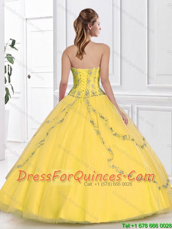 Latest 2016 Yellow Sweetheart Quinceanera Gowns with Beading