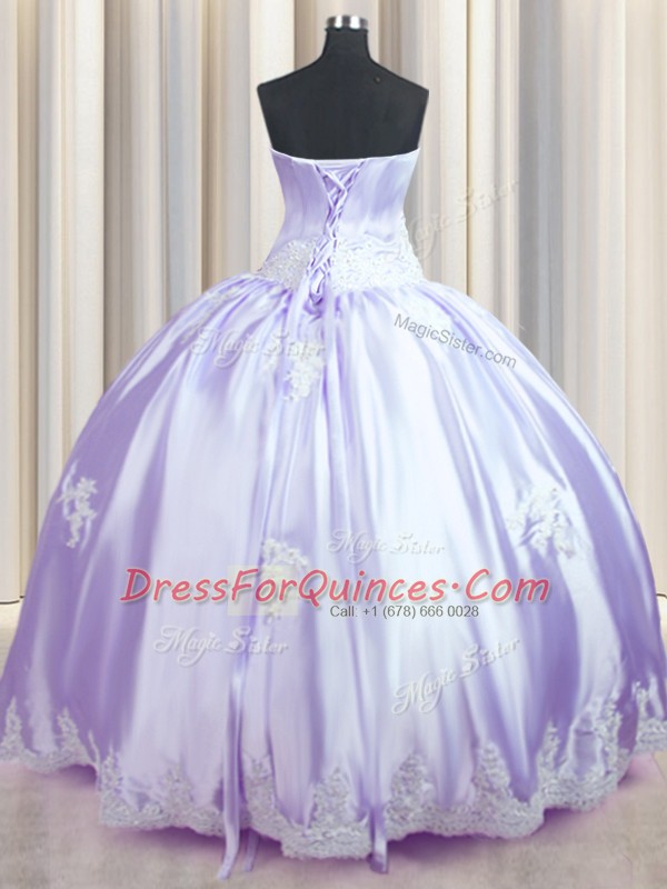 Lavender Sleeveless Floor Length Beading and Appliques Lace Up Sweet 16 Dress