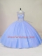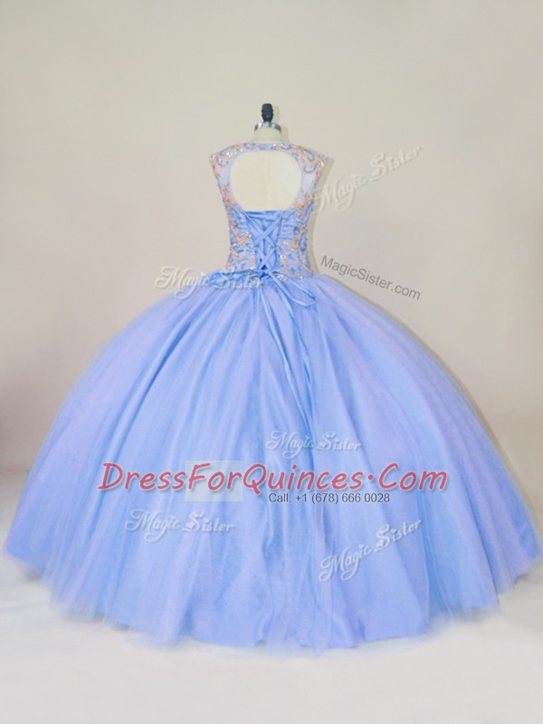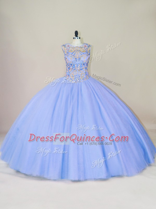 Lavender Tulle Lace Up Scoop Sleeveless Floor Length Sweet 16 Quinceanera Dress Beading
