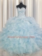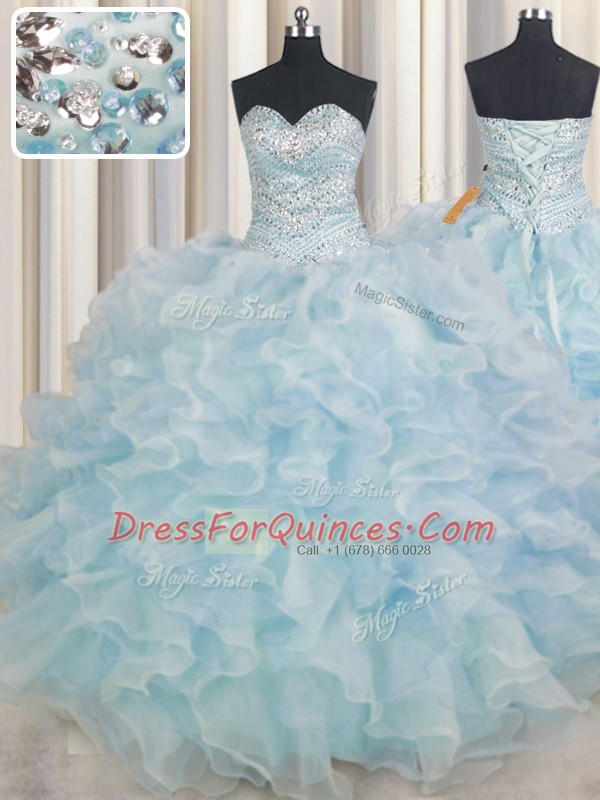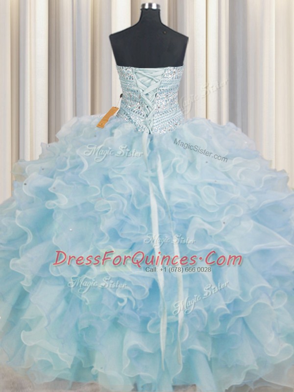 Light Blue Lace Up 15 Quinceanera Dress Beading and Ruffles Sleeveless Floor Length