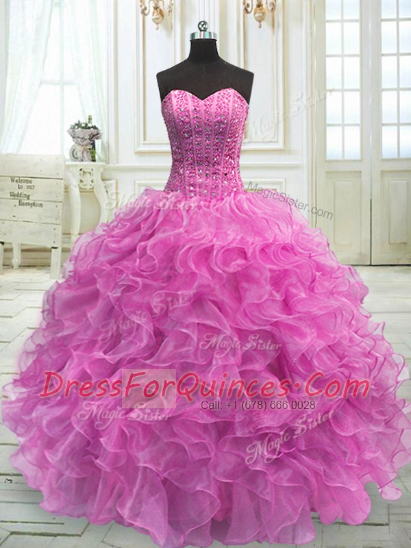 Lilac Sleeveless Beading and Ruffles Floor Length Sweet 16 Quinceanera Dress
