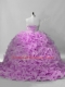 Lilac Sleeveless Fabric With Rolling Flowers Brush Train Lace Up Sweet 16 Quinceanera Dress for Sweet 16 and Quinceanera