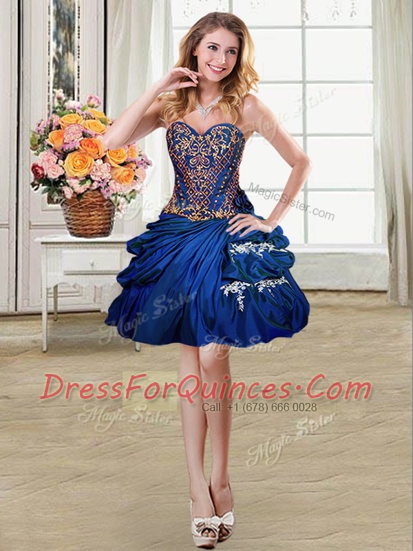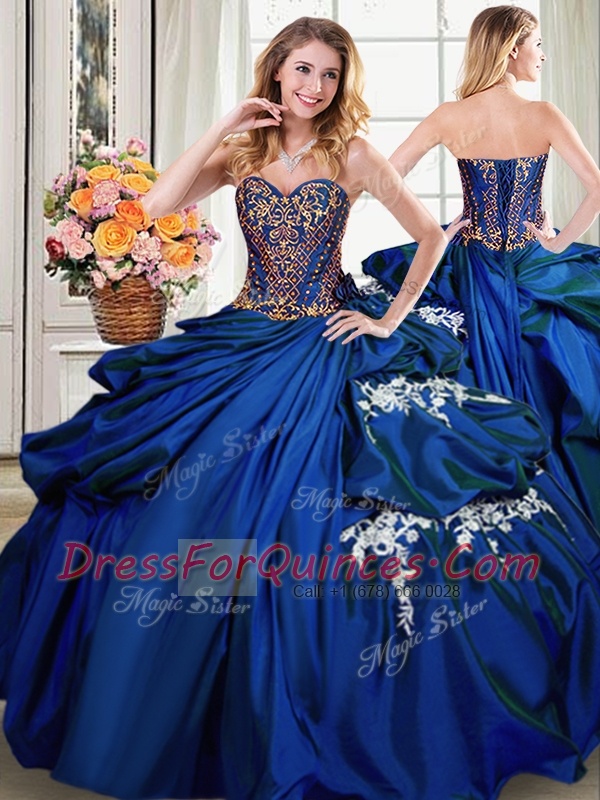Lovely Four Piece Royal Blue Ball Gowns Taffeta Sweetheart Sleeveless Beading and Appliques and Pick Ups Floor Length Lace Up 15 Quinceanera Dress
