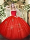 Lovely Red Tulle Zipper Strapless Sleeveless Floor Length Quince Ball Gowns Appliques