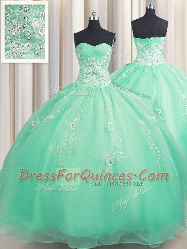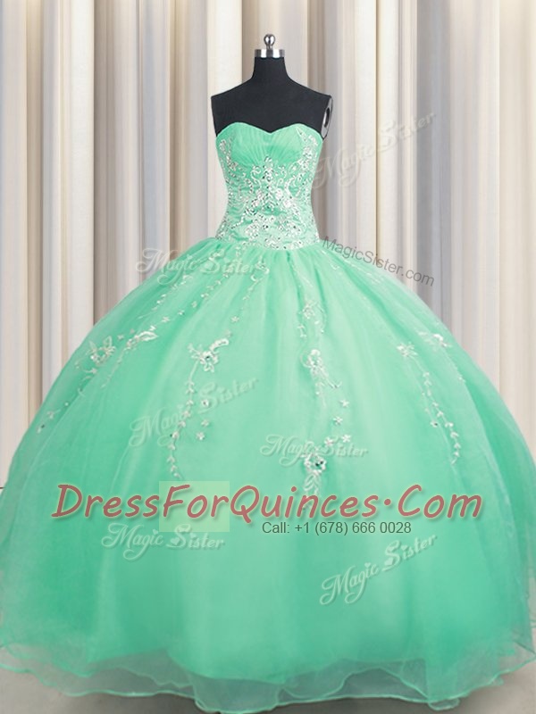 Lovely Turquoise Ball Gowns Sweetheart Sleeveless Organza Floor Length Zipper Beading and Appliques 15 Quinceanera Dress