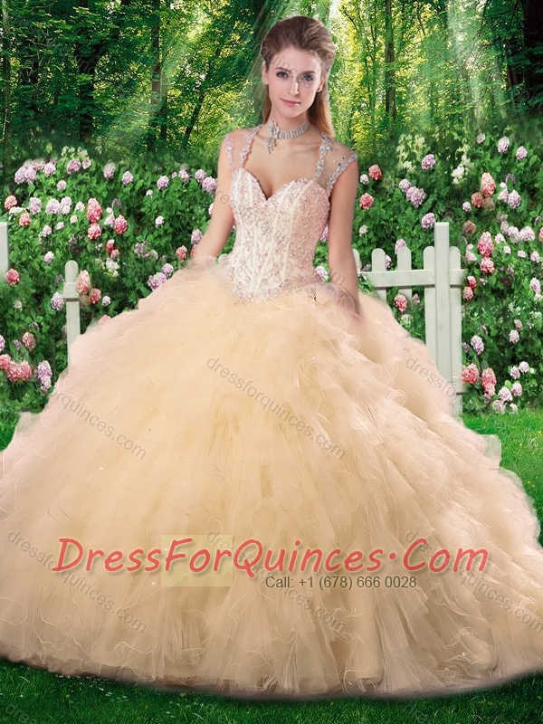 Luxurious Ball Gown Champange Quinceanera Dresses with Beading and Ruffles