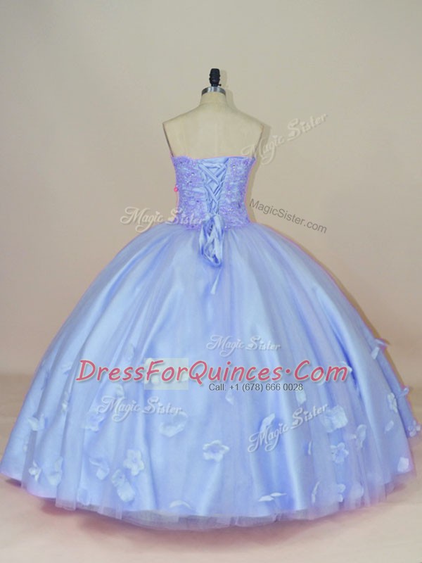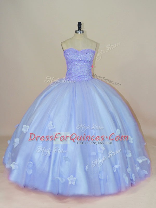Luxurious Lavender Side Zipper Sweetheart Beading and Hand Made Flower Sweet 16 Dresses Tulle Sleeveless