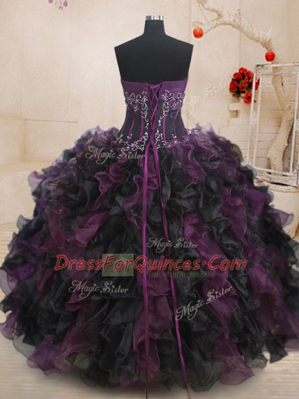 Modern Floor Length Lace Up Sweet 16 Dress Multi-color for Military Ball and Sweet 16 and Quinceanera with Beading and Ruffles