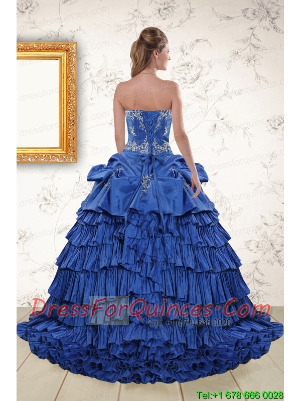 Modern Royal Blue Appliques and Pick Ups Quinceanera Dresses with Brush Train