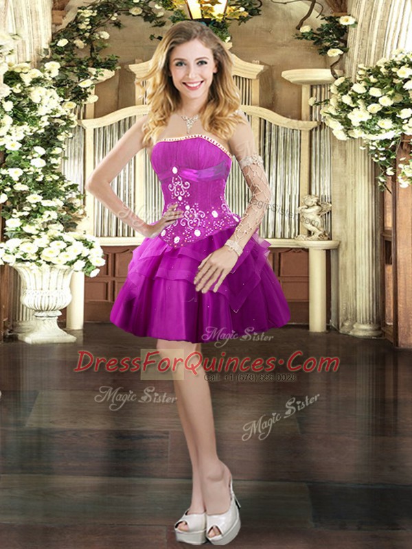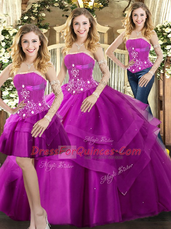 New Arrival Ball Gowns Quinceanera Gowns Fuchsia Strapless Tulle Sleeveless Floor Length Lace Up