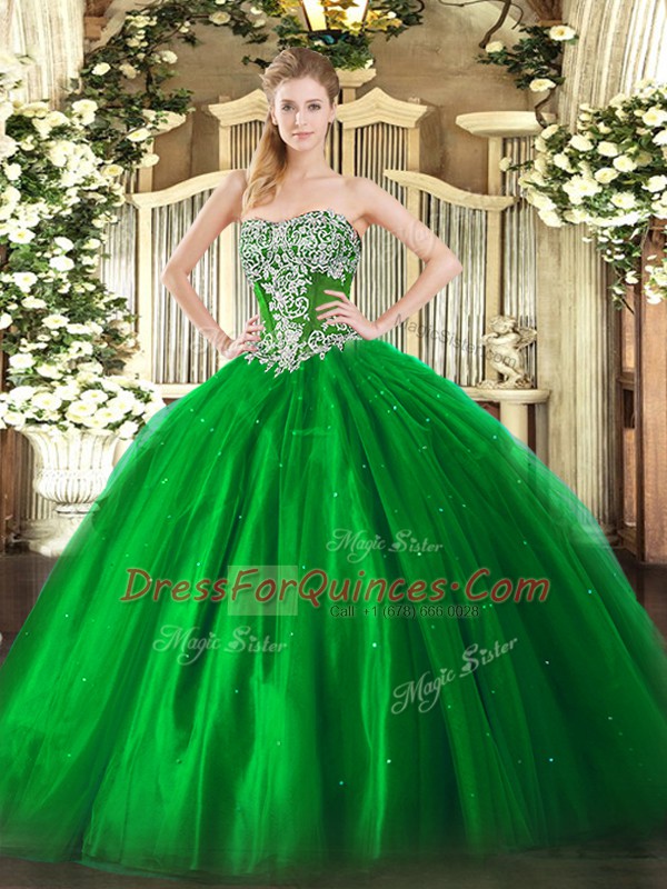 New Arrival Green Lace Up Strapless Beading Sweet 16 Dresses Tulle Sleeveless