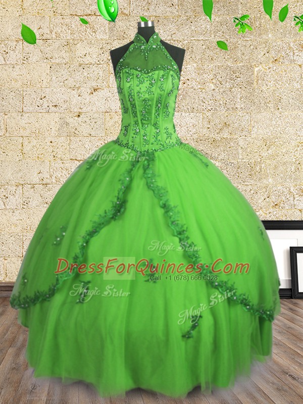 New Arrival Halter Top Sleeveless Lace Up Sweet 16 Dress Tulle
