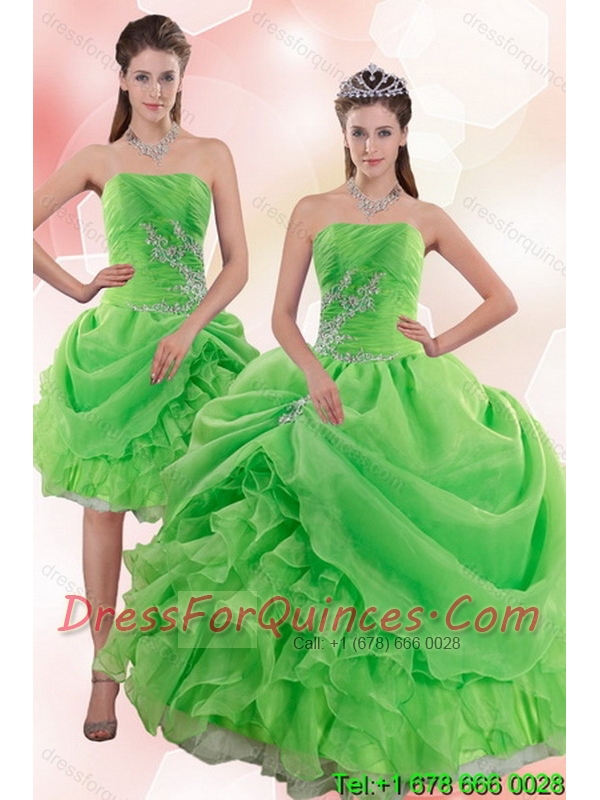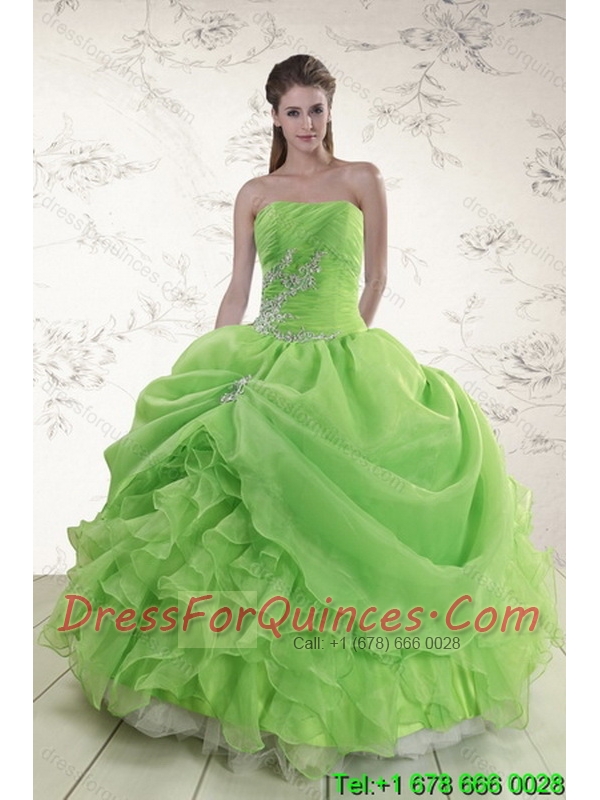 New Styles 2015 Pick Ups and Beading Quince Gowns in Spring Green