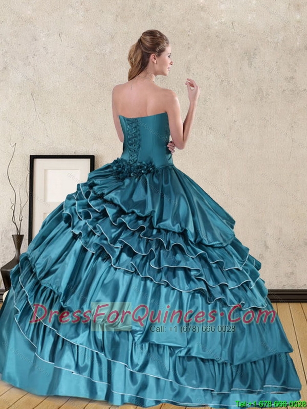 New Styles 2015 Teal Sweet 15 Dresses with Ruffled Layers and Beading