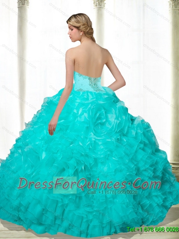 New Styles Beading and Ruffles 2015 Quinceanera Dresses in Aqua Blue