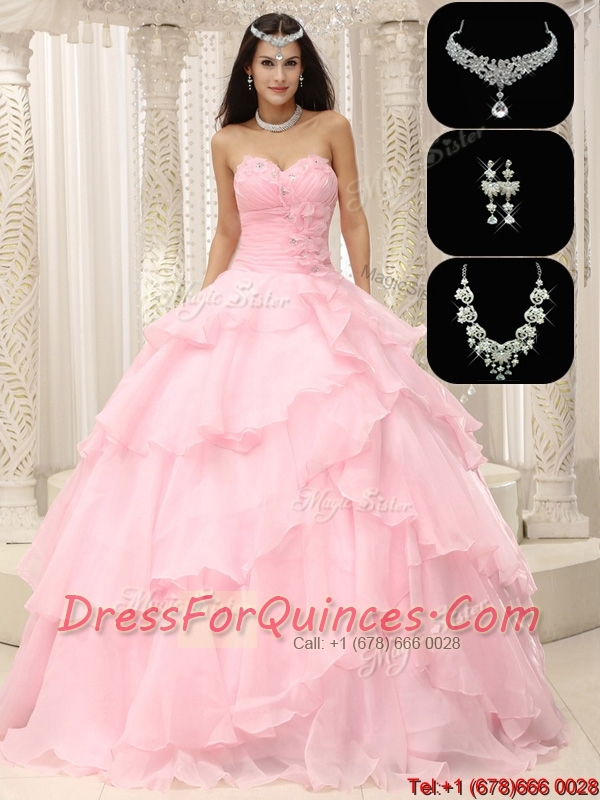New Styles Beading and Ruffles Sweet 16 Dresses in Baby Pink