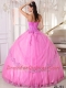 New Styles Hot Pink Ball Gown Sweetheart With Taffeta and Tulle Appliques Quinceanera Dress