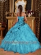 New Styles In Aqua Blue Ball Gown Sweetheart With Organza Appliques Quinceanera Dress