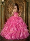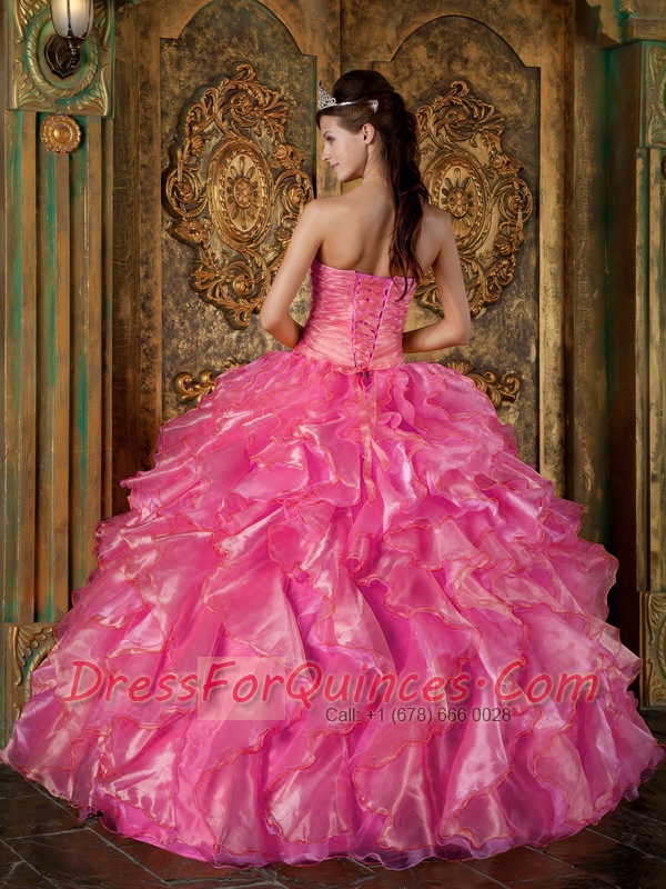 New Styles In Hot Pink Ball Gown Strapless With Beading and Ruffles Quinceanera Dress