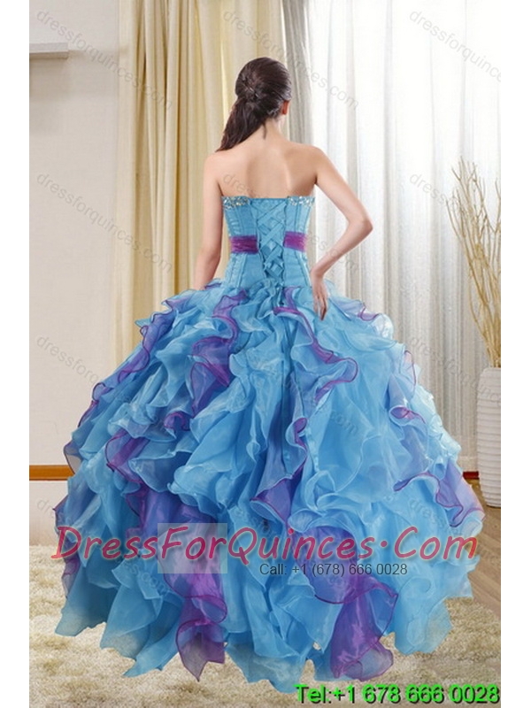 New Styles Multi Color 2015 Quinceanera Dresses with Ruffles and Beading