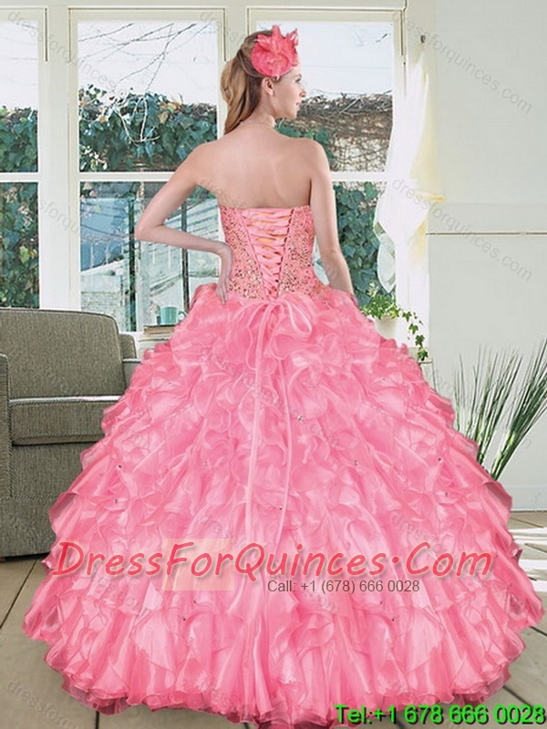 New Styles Pink Sweetheart Ruffled Quinceanera Dresses with Beading