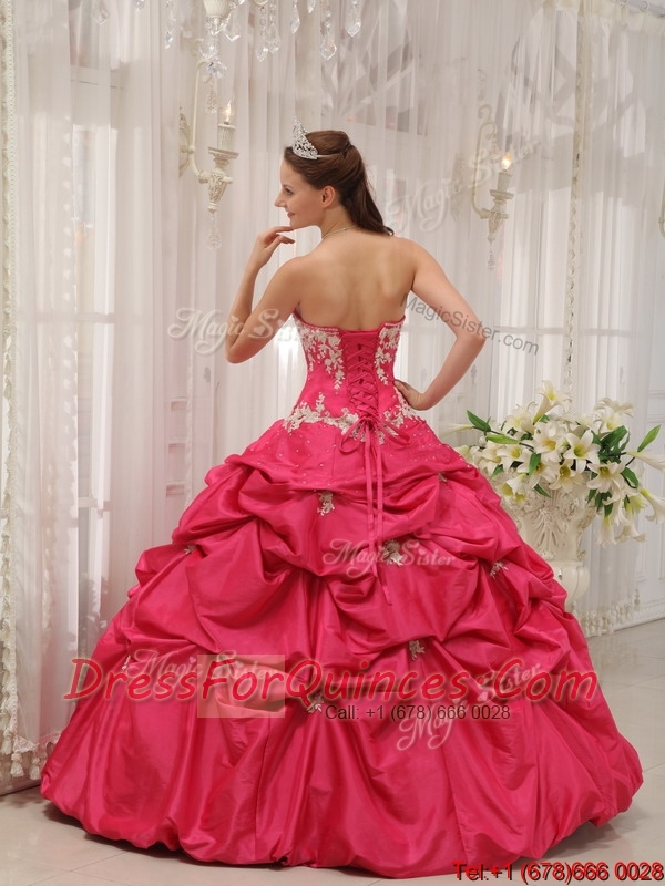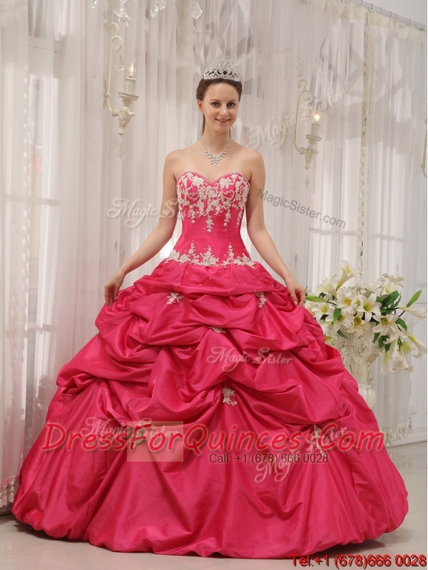 New Styles Sweetheart Appliques Quinceanera Gowns with in Coral Red