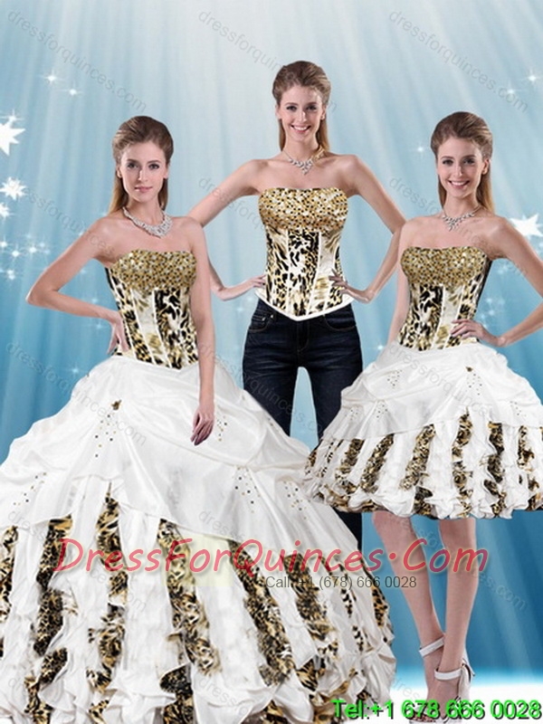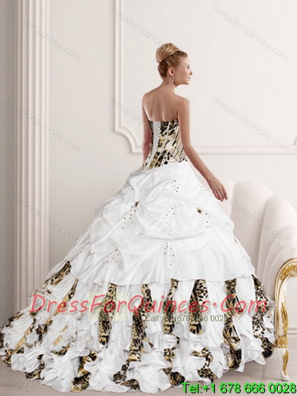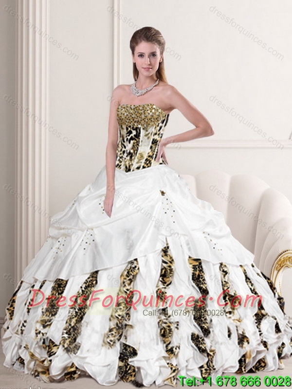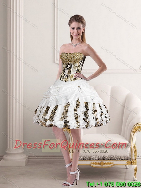 New Styles White Strapless Leopard Printed 2015 Quinceanera Dresses with Pick Ups