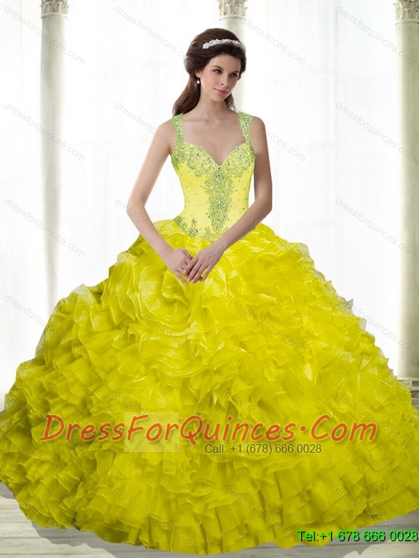 New Styles Yellow Beading and Ruffles Sweetheart Dresses for a Quinceanera