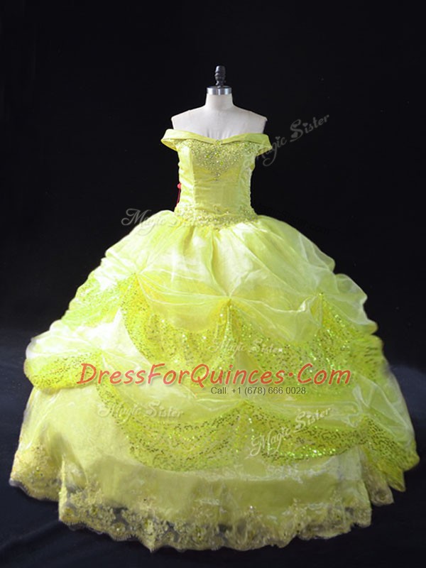 Nice Floor Length Ball Gowns Sleeveless Yellow Green Sweet 16 Quinceanera Dress Lace Up