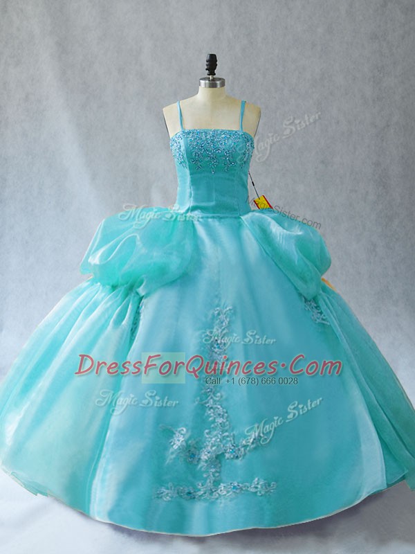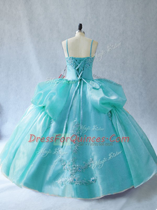 Noble Floor Length Ball Gowns Sleeveless Aqua Blue Ball Gown Prom Dress Lace Up