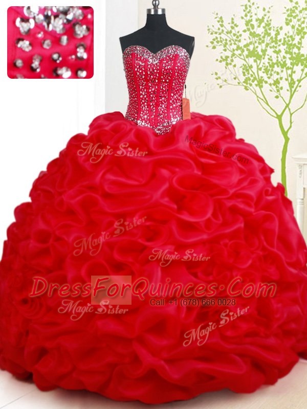 Noble Red Sleeveless Beading and Pick Ups Lace Up Sweet 16 Dress