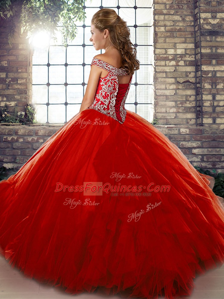 Off The Shoulder Sleeveless Lace Up 15 Quinceanera Dress Tulle