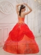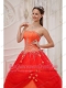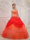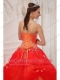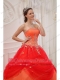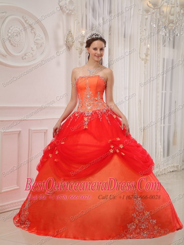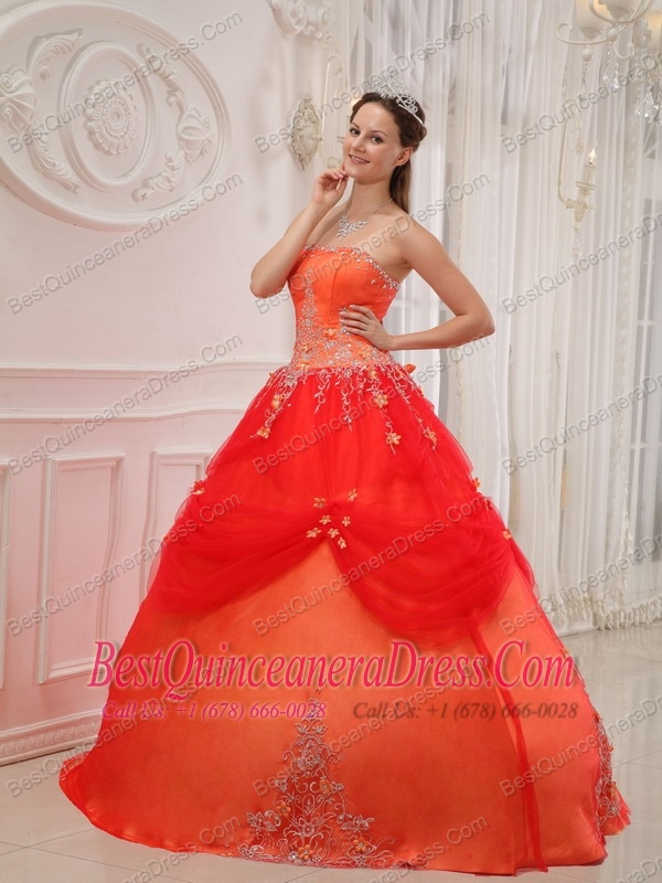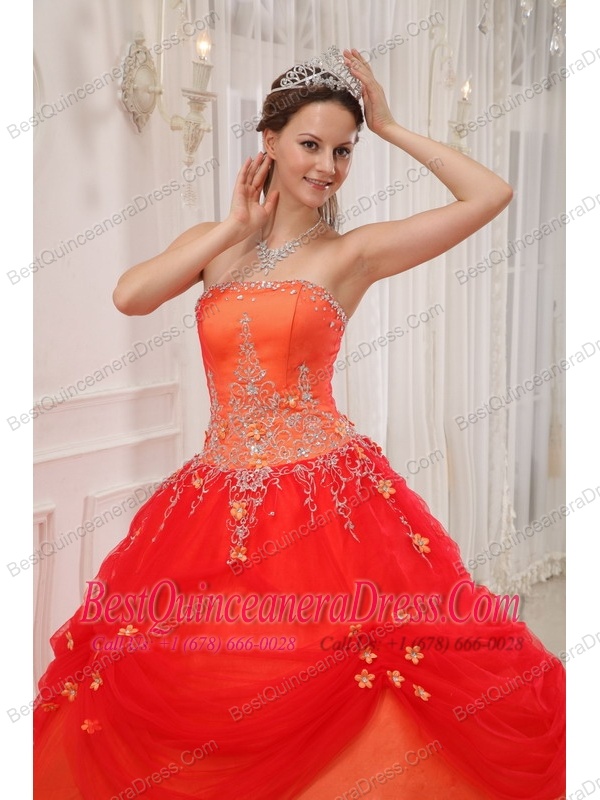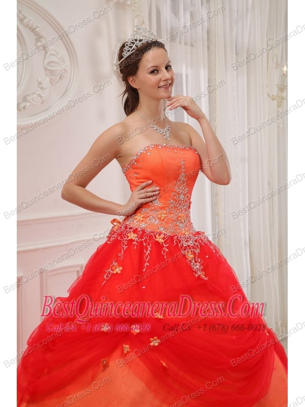 Orange Red Ball Gown Strapless Floor-length Taffeta and Tulle Appliques Quinceanera Dress