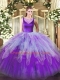 Organza Scoop Sleeveless Side Zipper Beading and Ruffles Ball Gown Prom Dress in Multi-color
