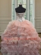 Peach Lace Up Sweetheart Beading and Ruffles Quinceanera Dresses Organza Sleeveless