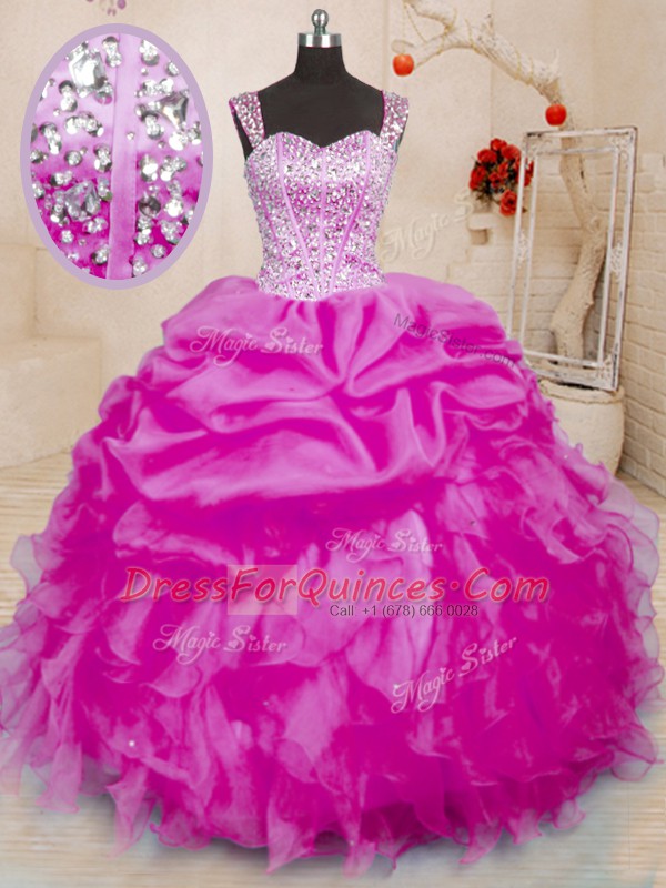 Pick Ups Floor Length Ball Gowns Sleeveless Fuchsia Quince Ball Gowns Lace Up