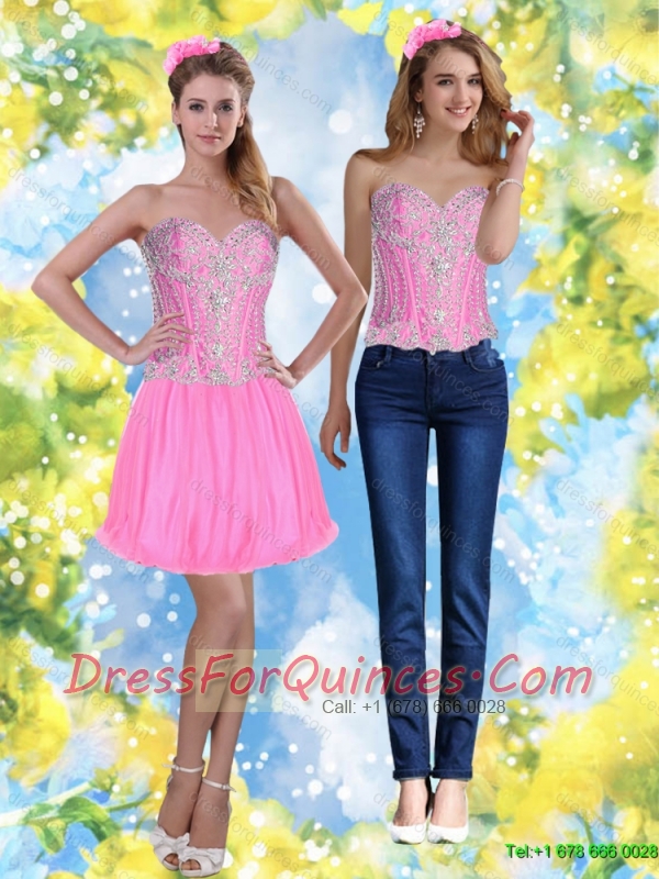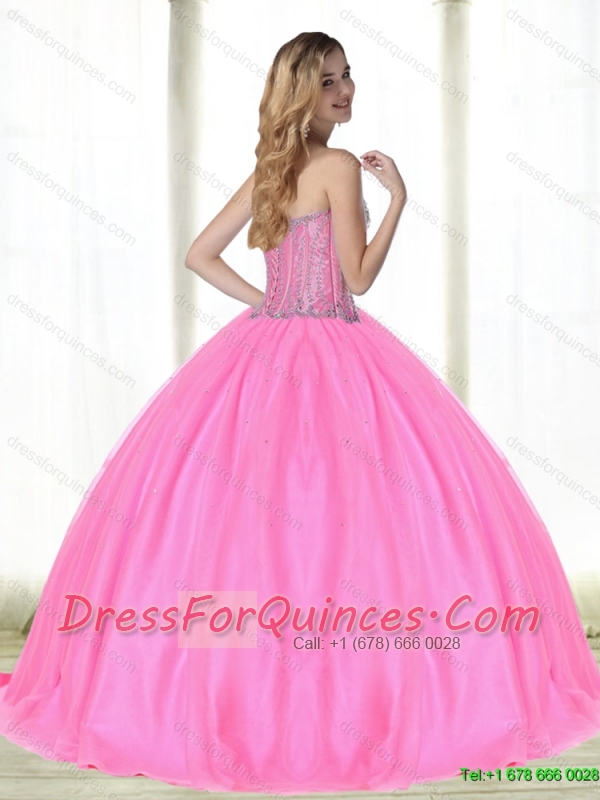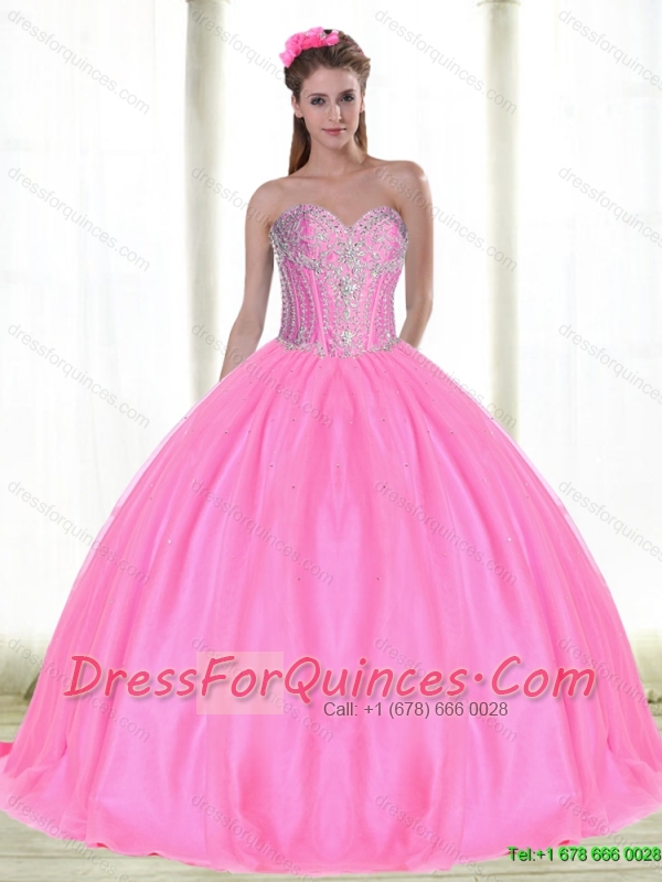 Pink 2015 New Styles Quinceanera Dresses with Beading
