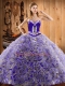 Popular Multi-color Ball Gowns Sweetheart Sleeveless Satin and Fabric With Rolling Flowers With Train Sweep Train Lace Up Embroidery Quince Ball Gowns