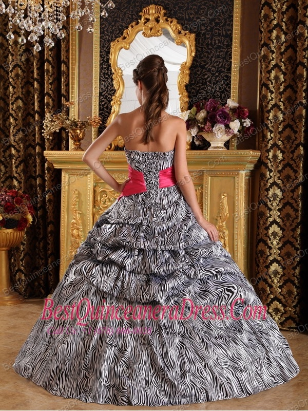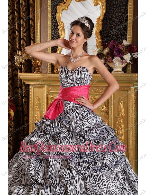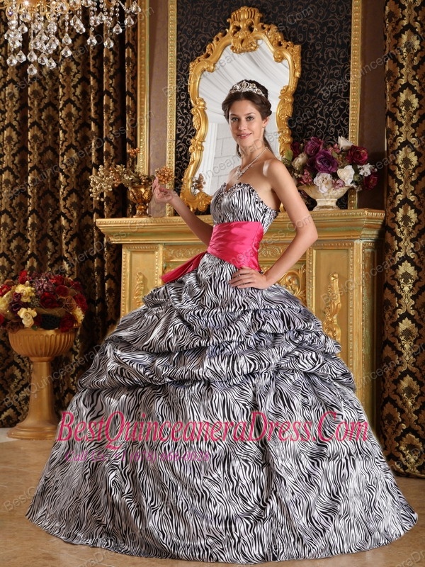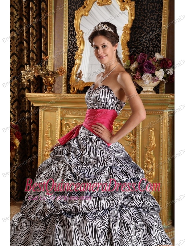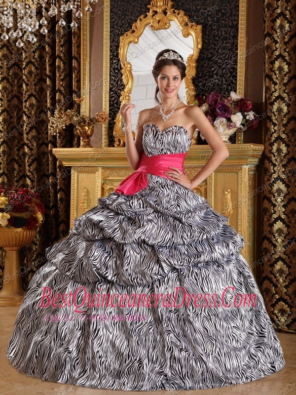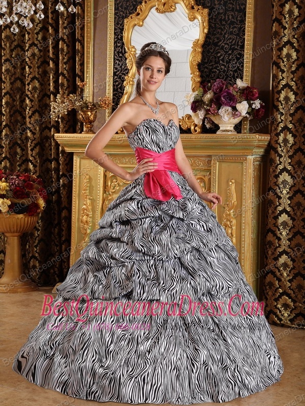Popular Zebra Print Quinceanera Dress with Hot Pink sash Sweetheart Floor-length Ball Gown