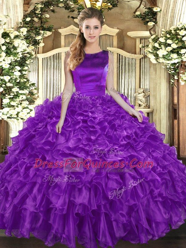 Pretty Eggplant Purple Sleeveless Ruffles Floor Length 15th Birthday Dress