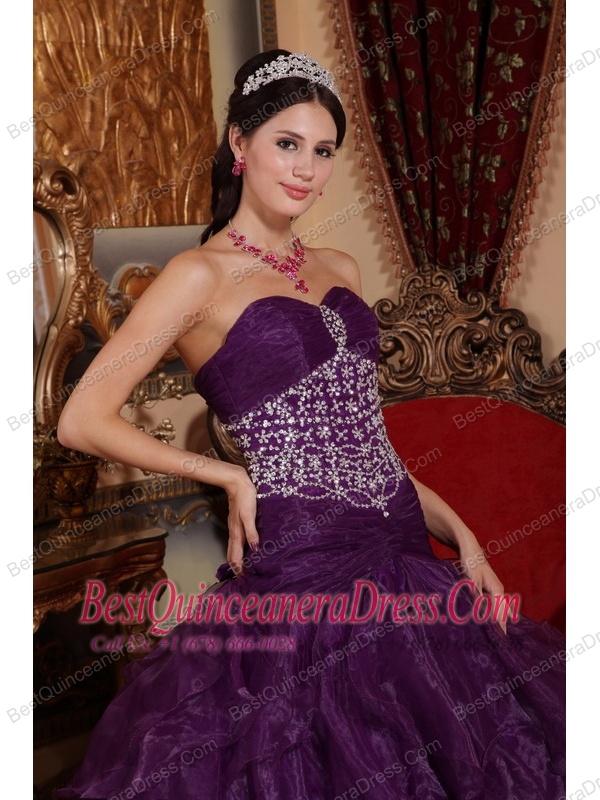 Purple A-line Sweetheart Floor-length Organza Beading Quinceanera Dress