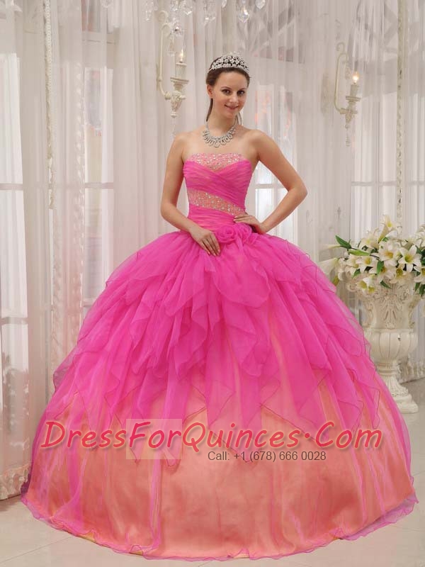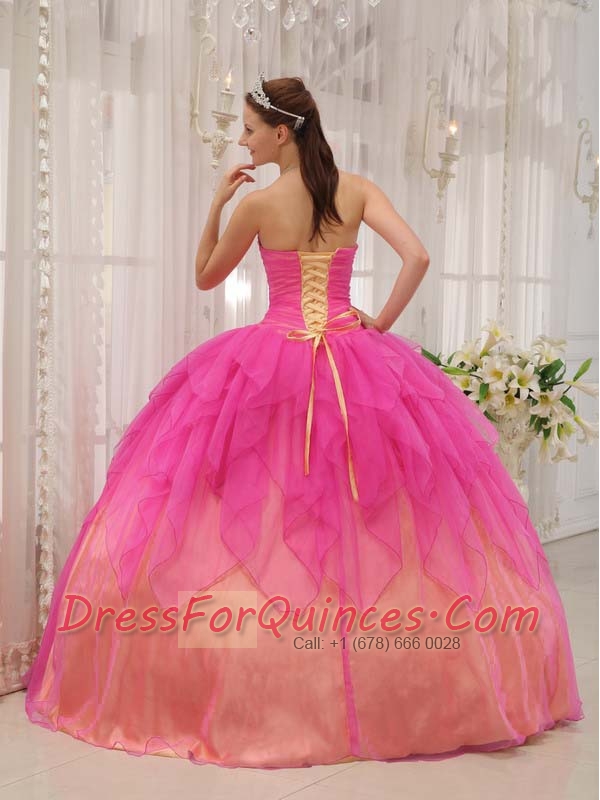 Quinceanera Dress In Hot Pink Ball Gown Strapless With Organza Beading New Styles