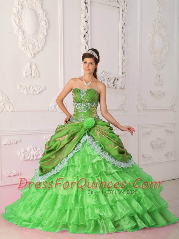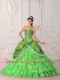 Quinceanera Dress In Spring Green Ball Gown Strapless With Lace and Appliques In New Styles